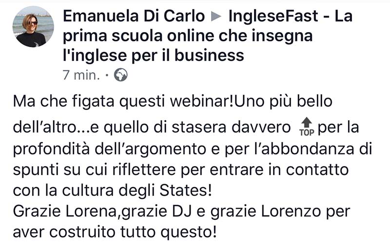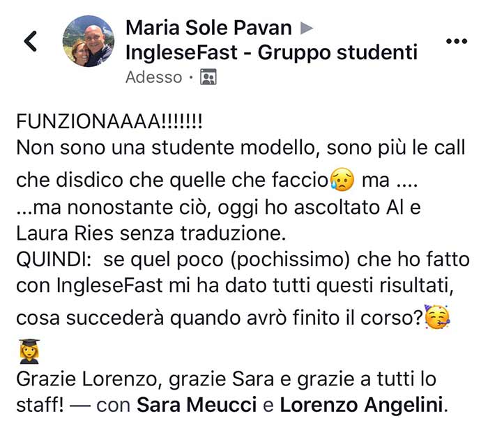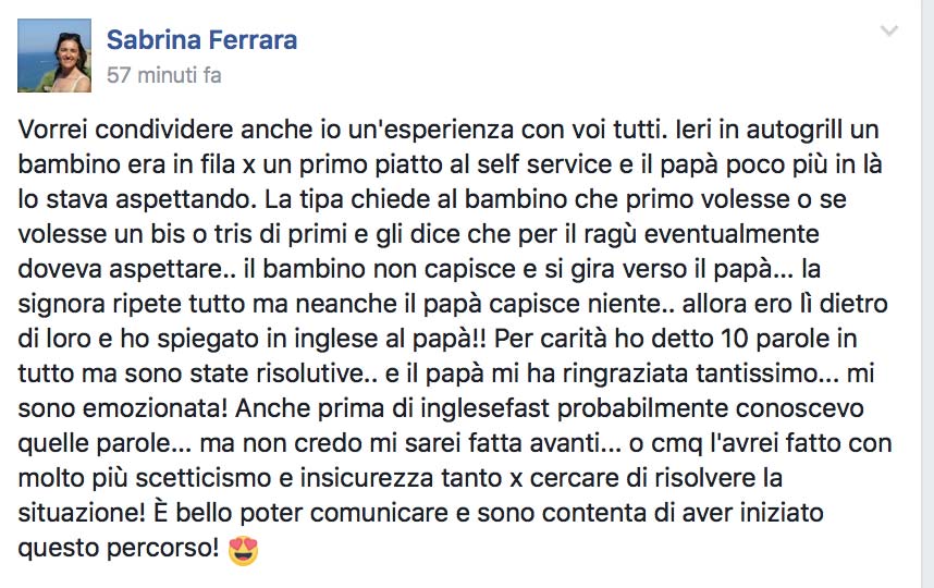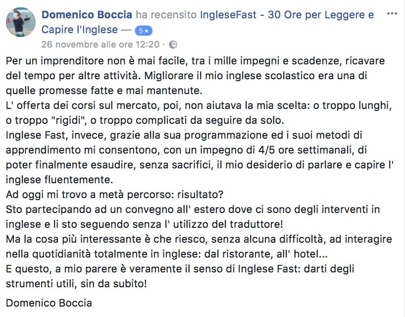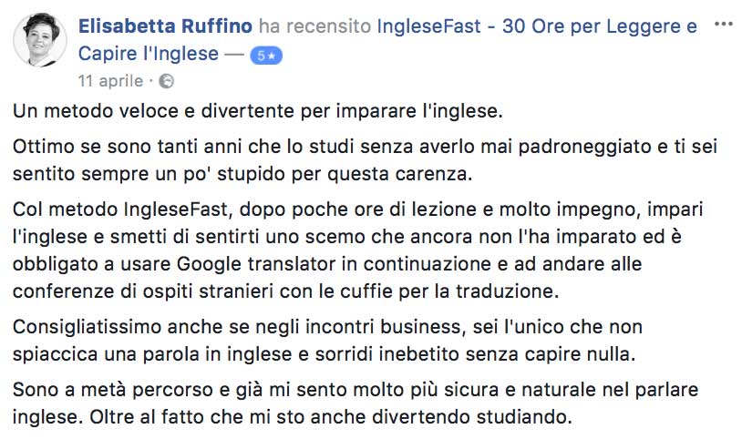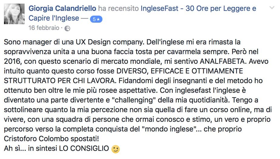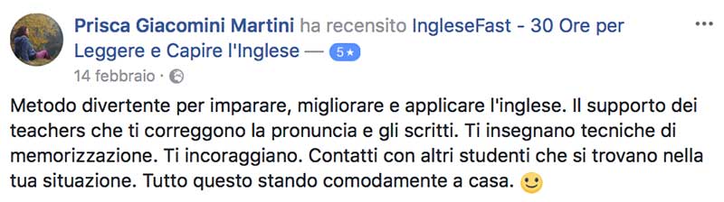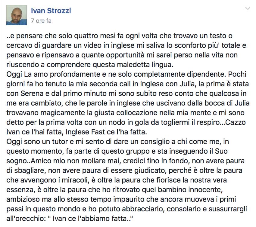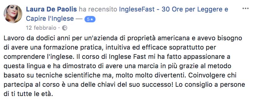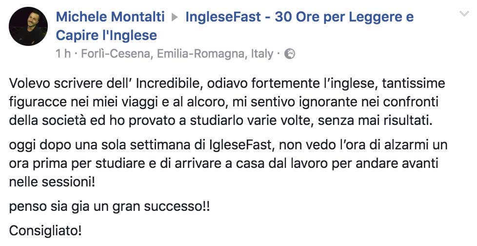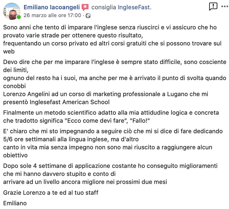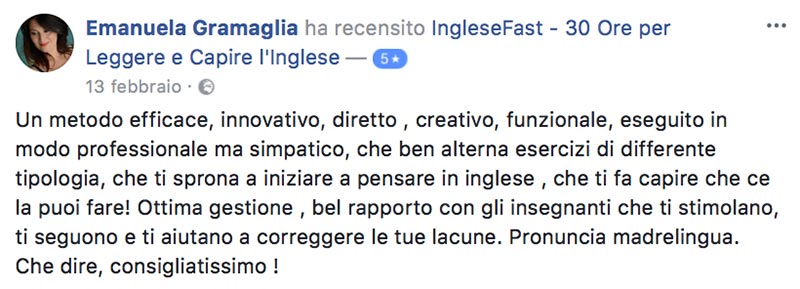 I risultati raggiunti, le opinioni e le recensioni spontanee delle centinaia di persone che in questi anni hanno imparato l’inglese americano con il Metodo IngleseFast.