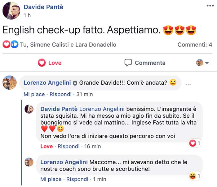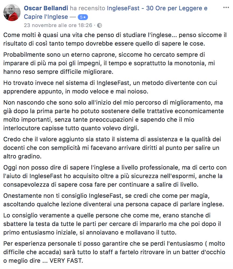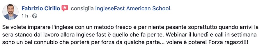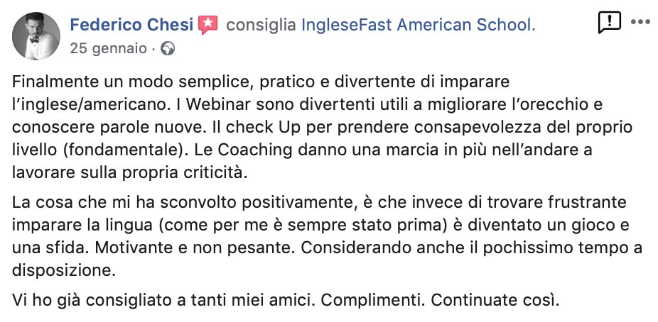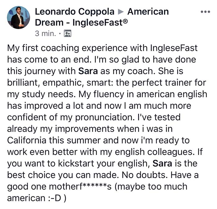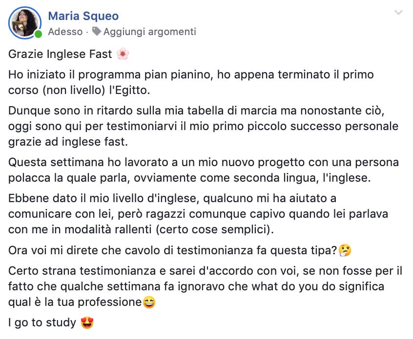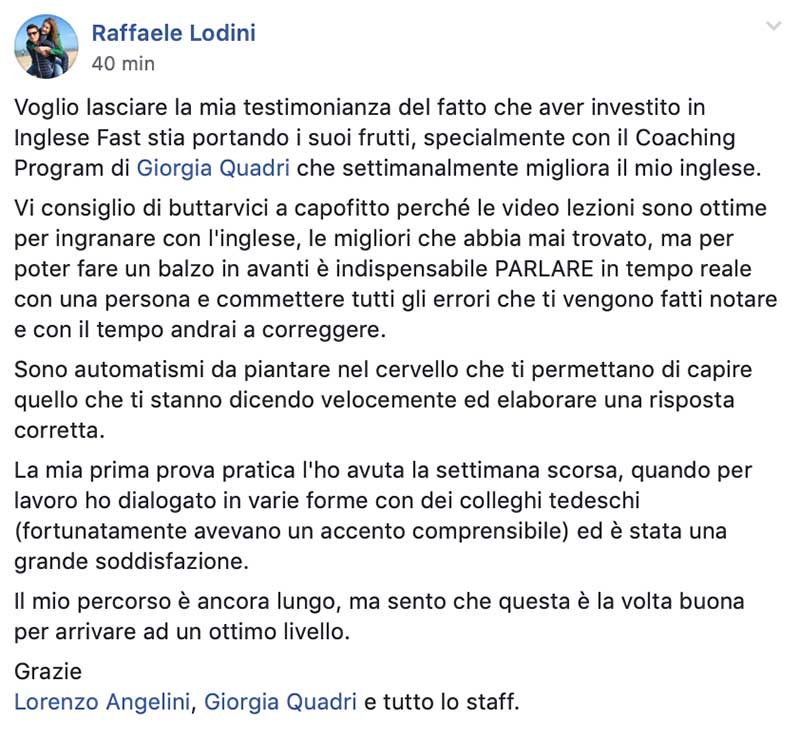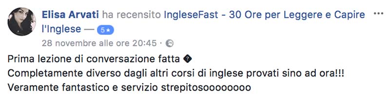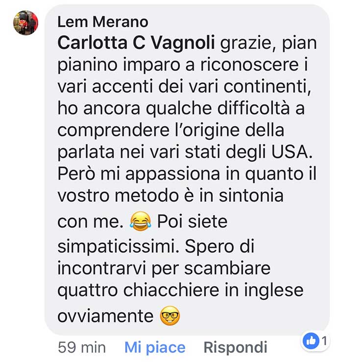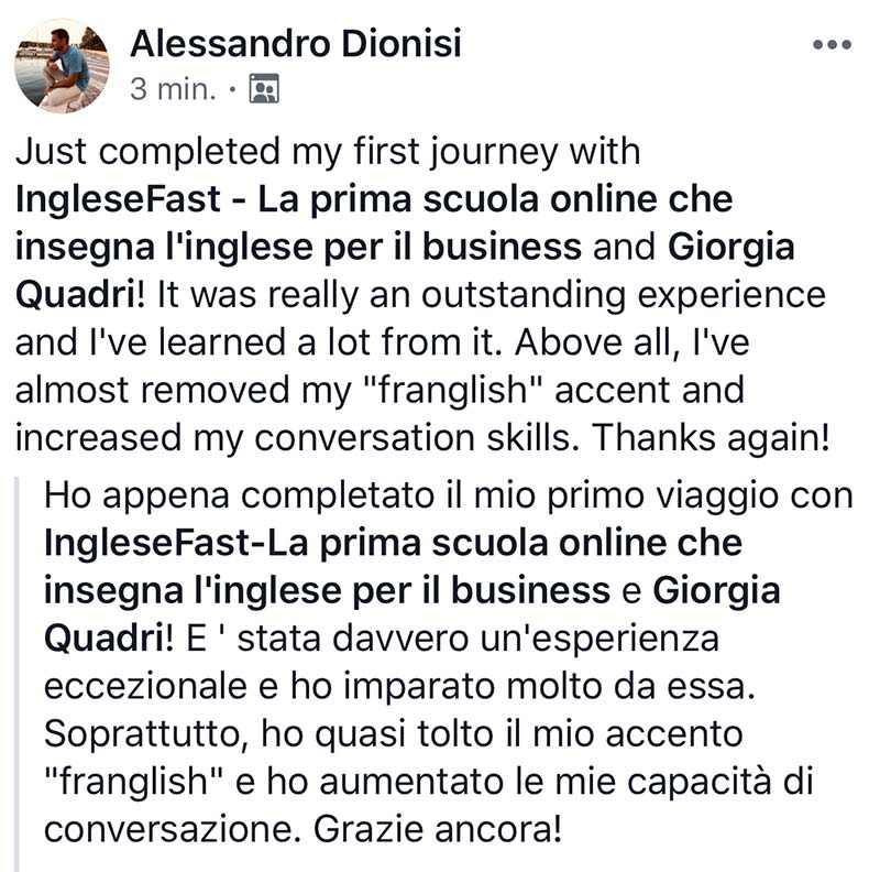 I risultati raggiunti, le opinioni e le recensioni spontanee delle centinaia di persone che in questi anni hanno imparato l’inglese americano con il Metodo IngleseFast.
