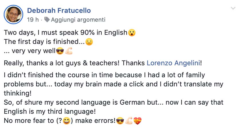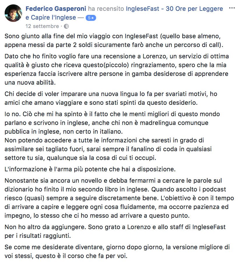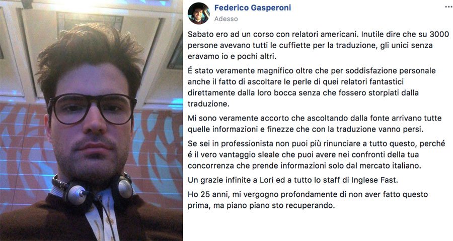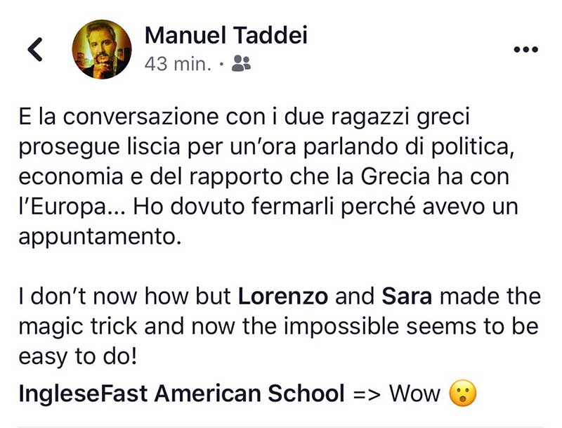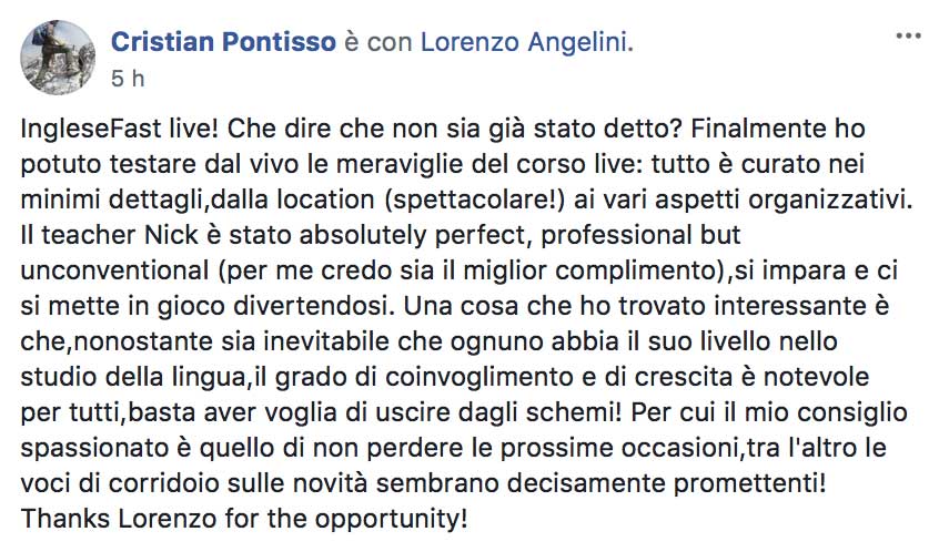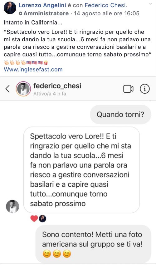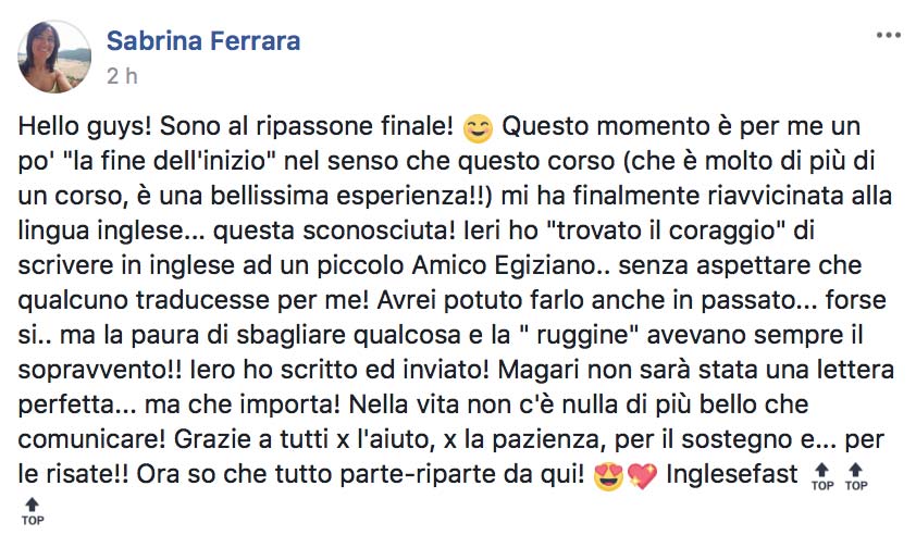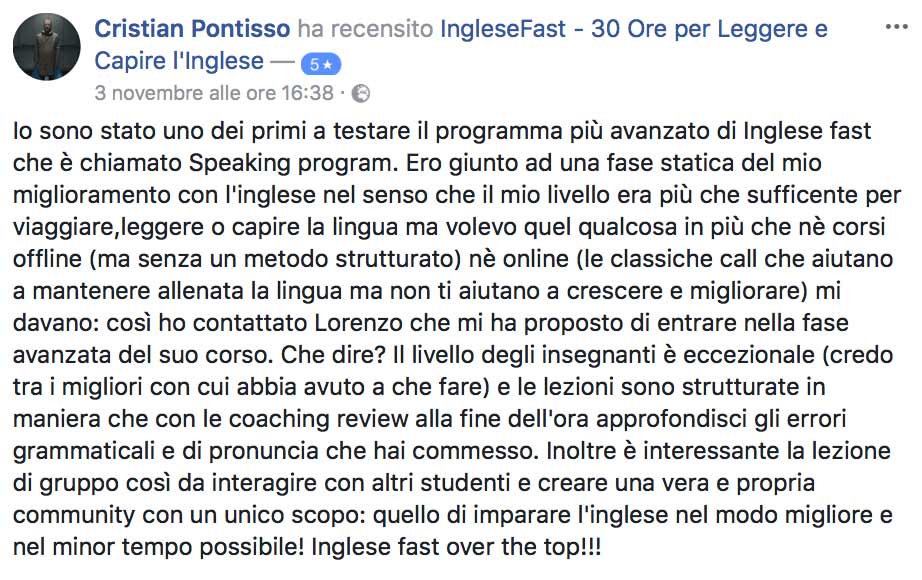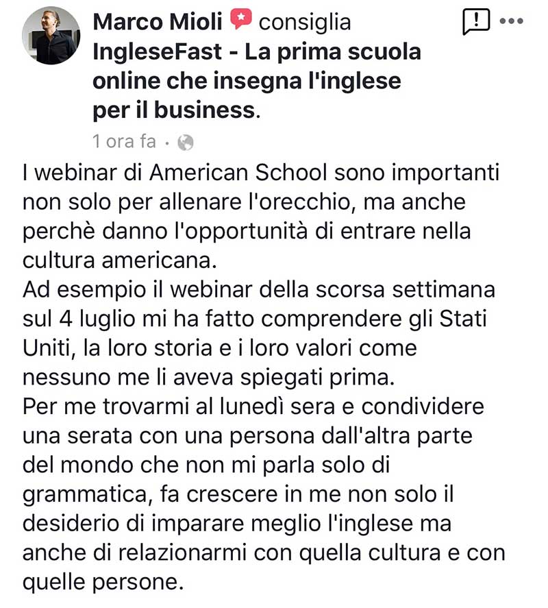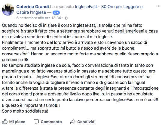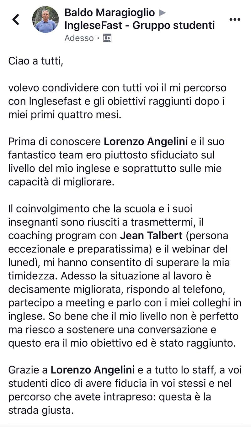 I risultati raggiunti, le opinioni e le recensioni spontanee delle centinaia di persone che in questi anni hanno imparato l’inglese americano con il Metodo IngleseFast.