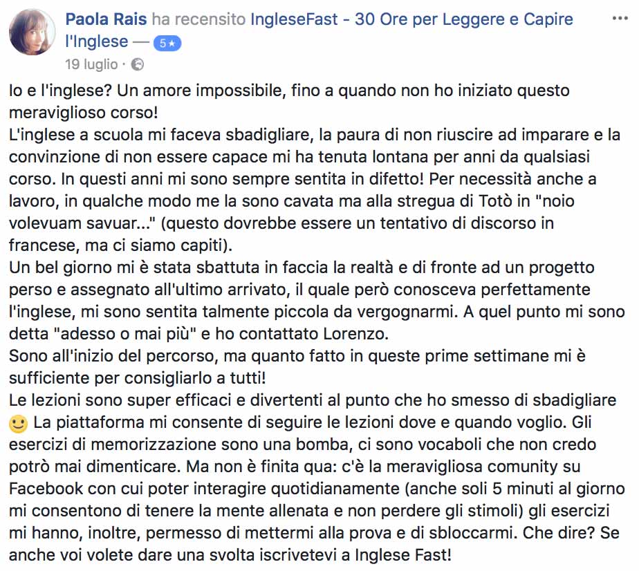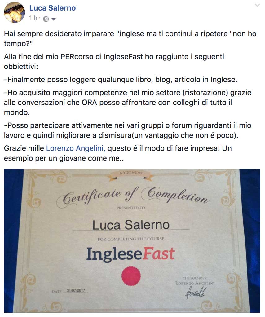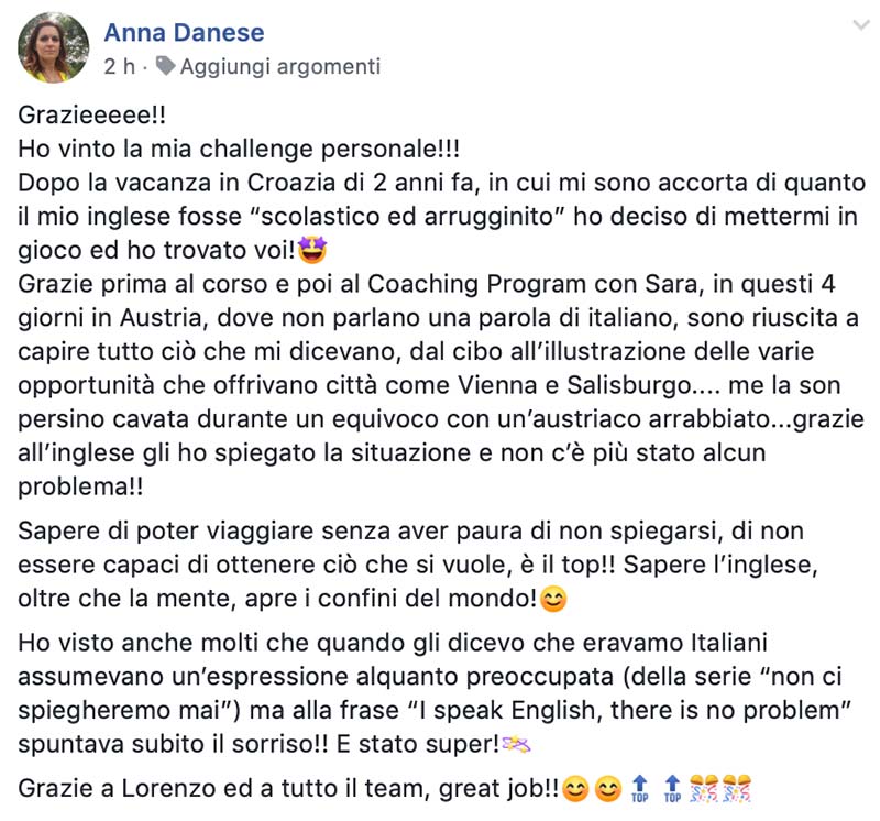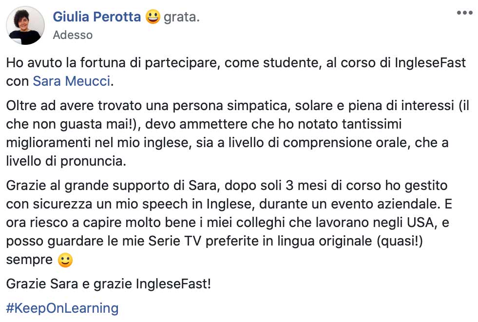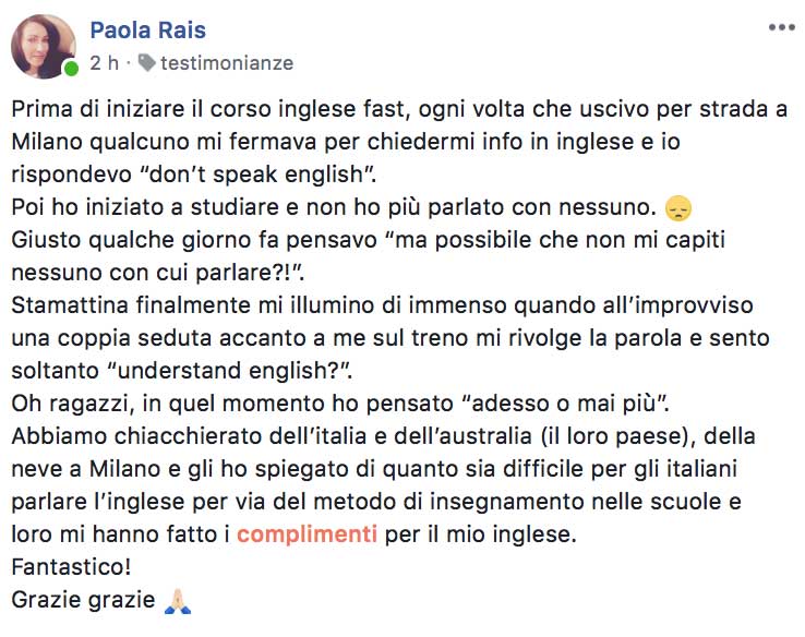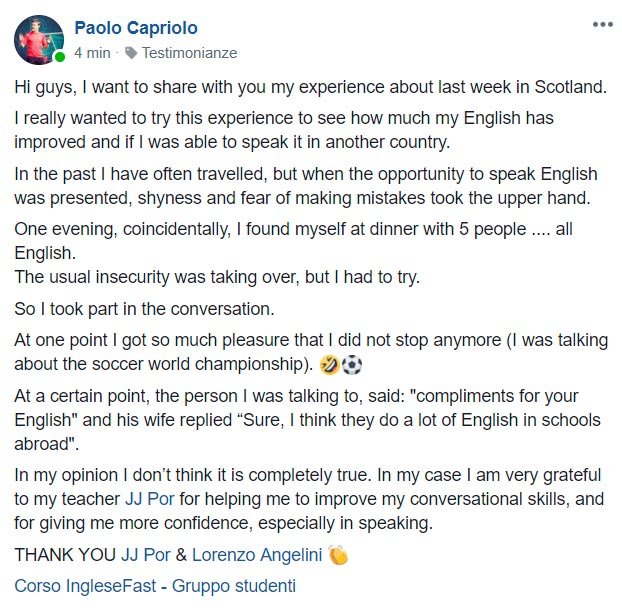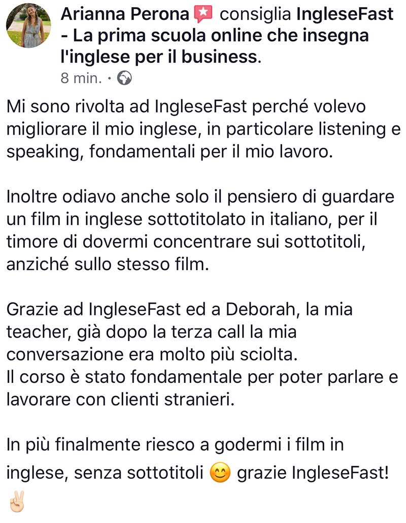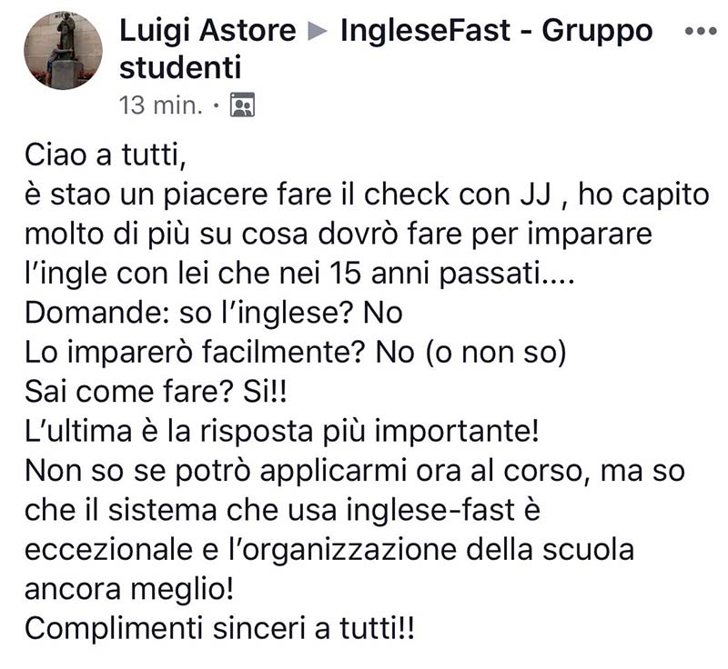 I risultati raggiunti, le opinioni e le recensioni spontanee delle centinaia di persone che in questi anni hanno imparato l’inglese americano con il Metodo IngleseFast.