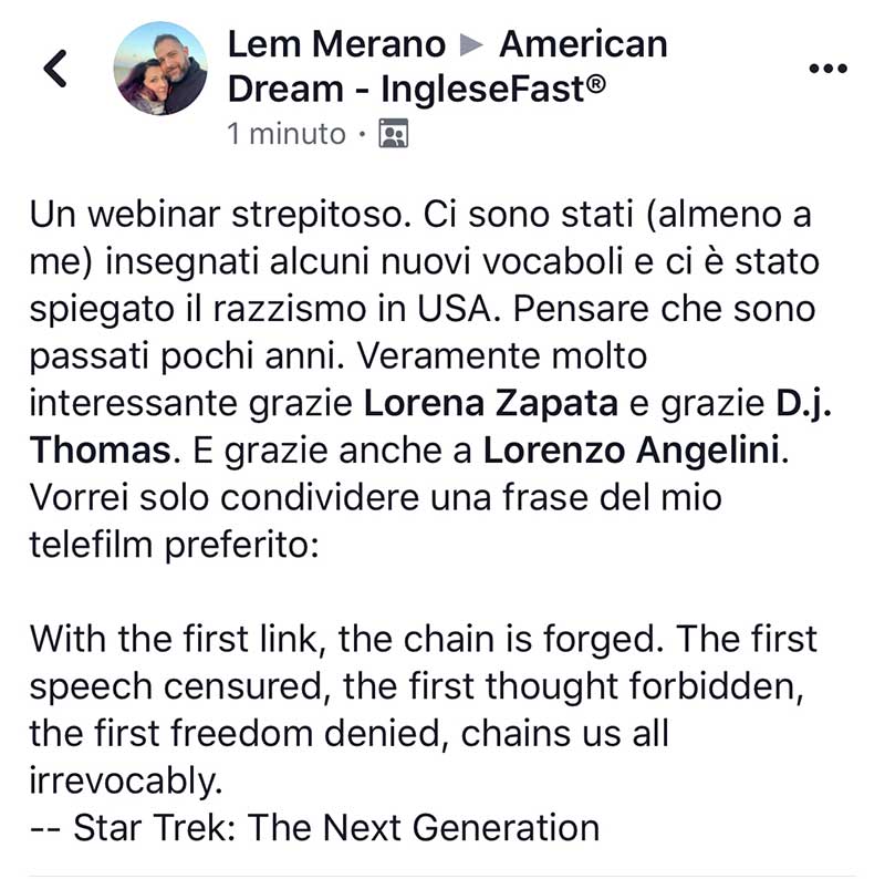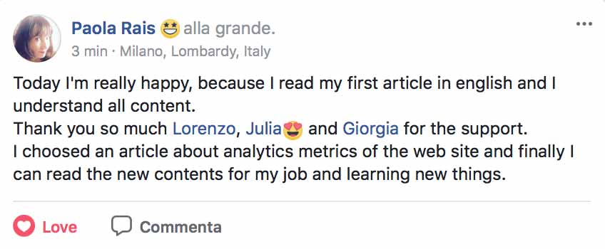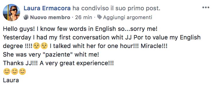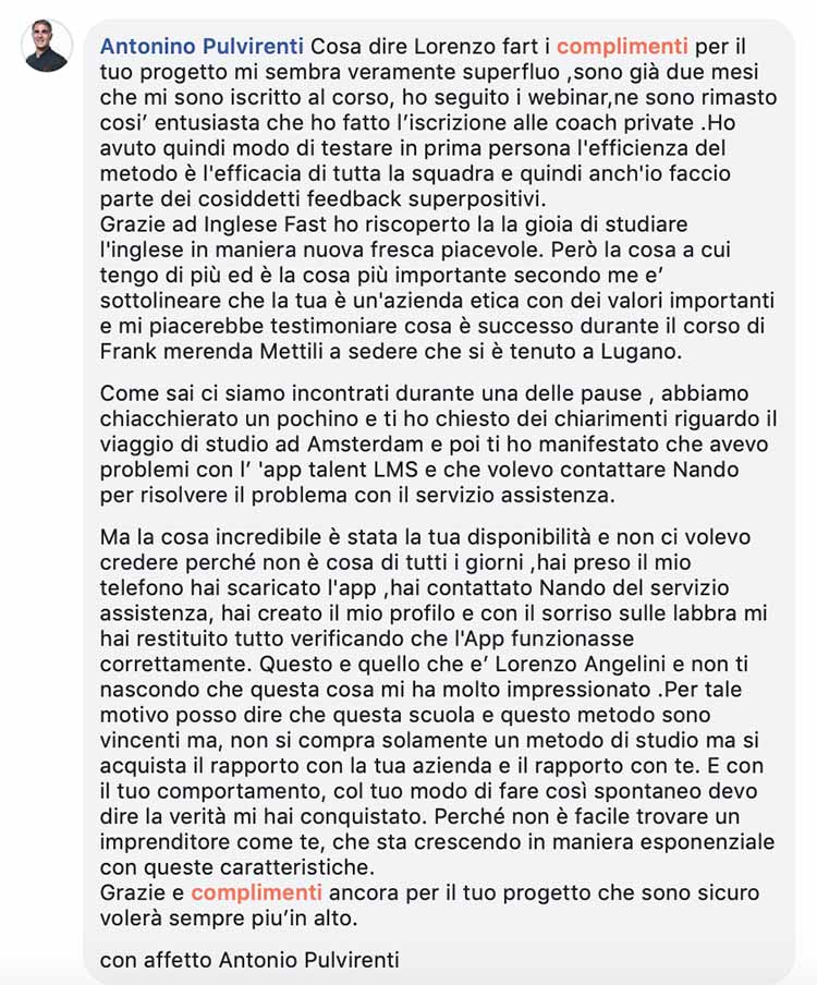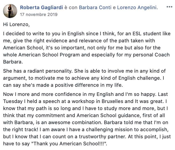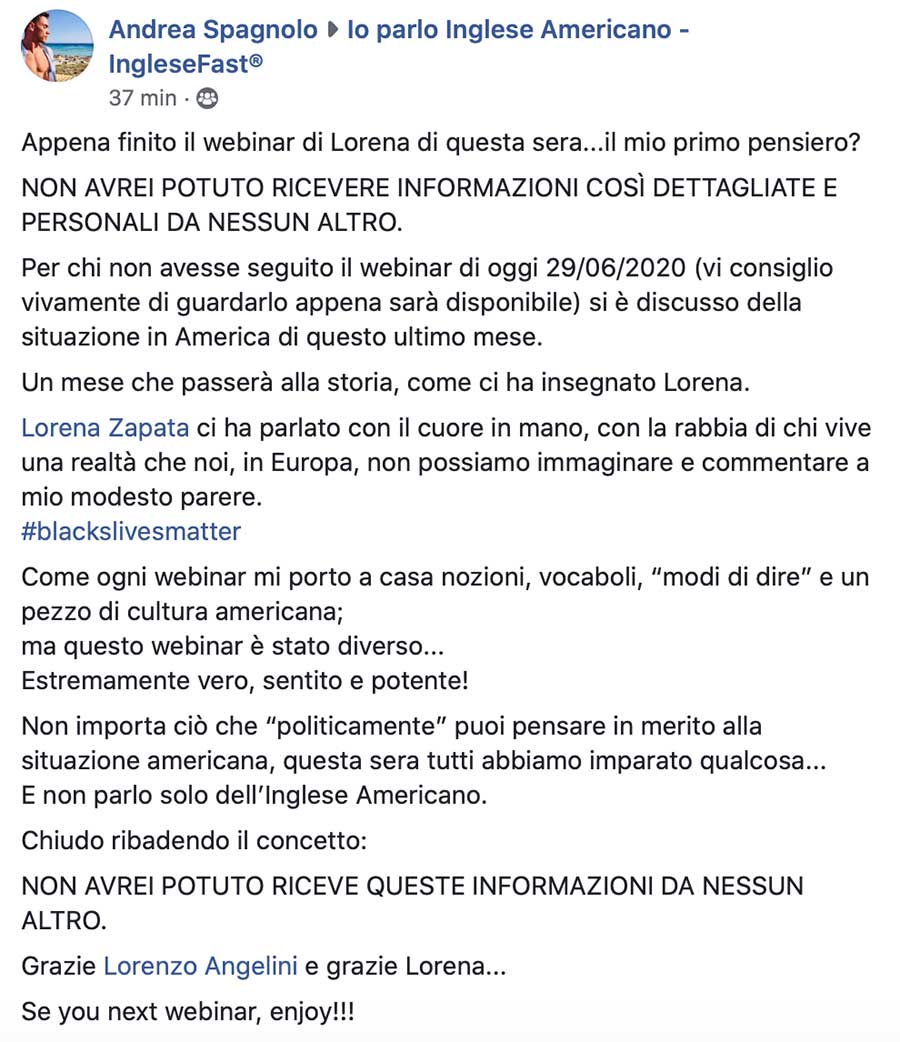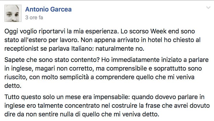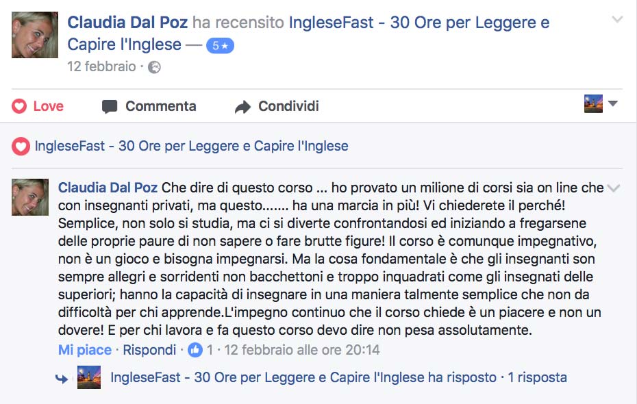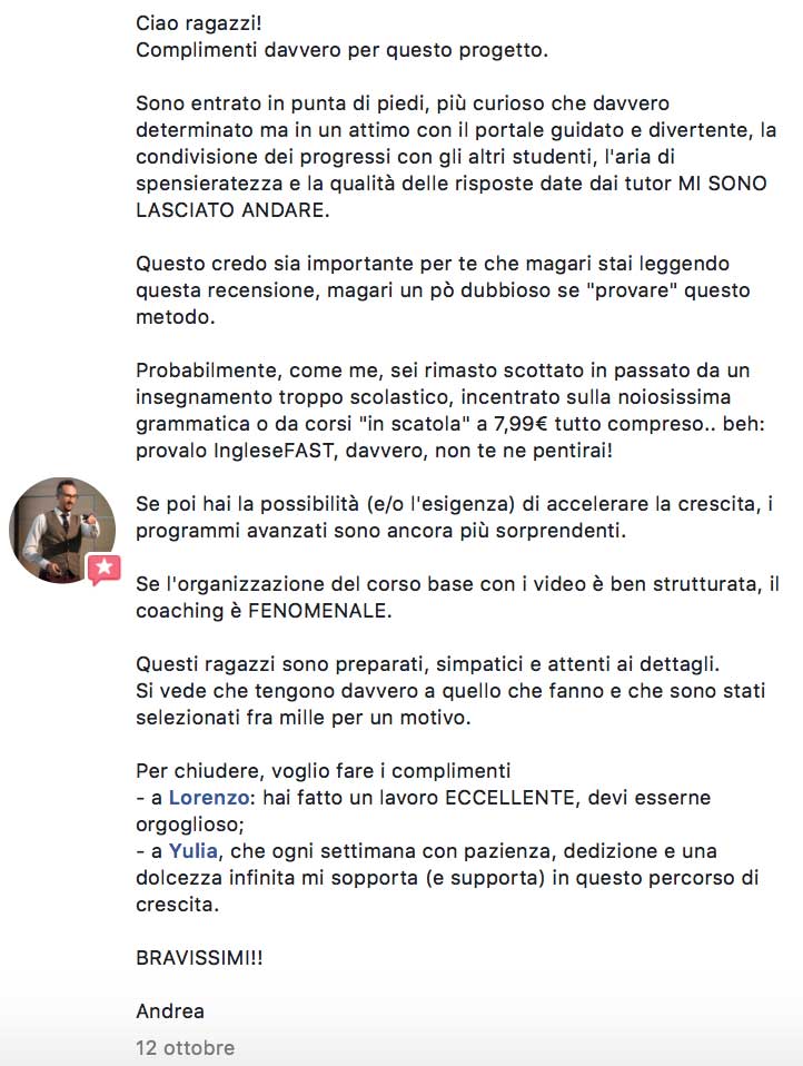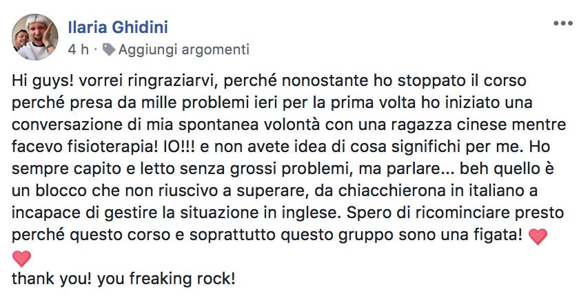 I risultati raggiunti, le opinioni e le recensioni spontanee delle centinaia di persone che in questi anni hanno imparato l’inglese americano con il Metodo IngleseFast.
