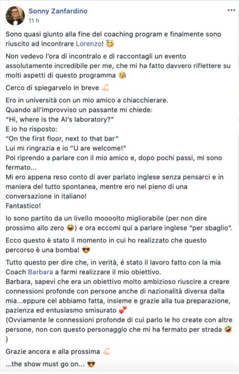 Mi guardo intorno e… mi ritrovo davanti Sonny, uno studente del Coaching Program VIP che mi racconta un episodio divertente.